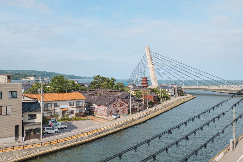 当館の自慢は、氷見の海とまちなかの景色を一望できる景観。時間とともに表情を変える氷見の姿を眺めながら、ゆったりとした時間を過ごすことができます。特に川の音を聴きながらぼんやりするのがおすすめです。また、お泊りいただいた翌朝は早起きして屋上から海越しの立山連峰と日の出を観ていただきたいと思います。